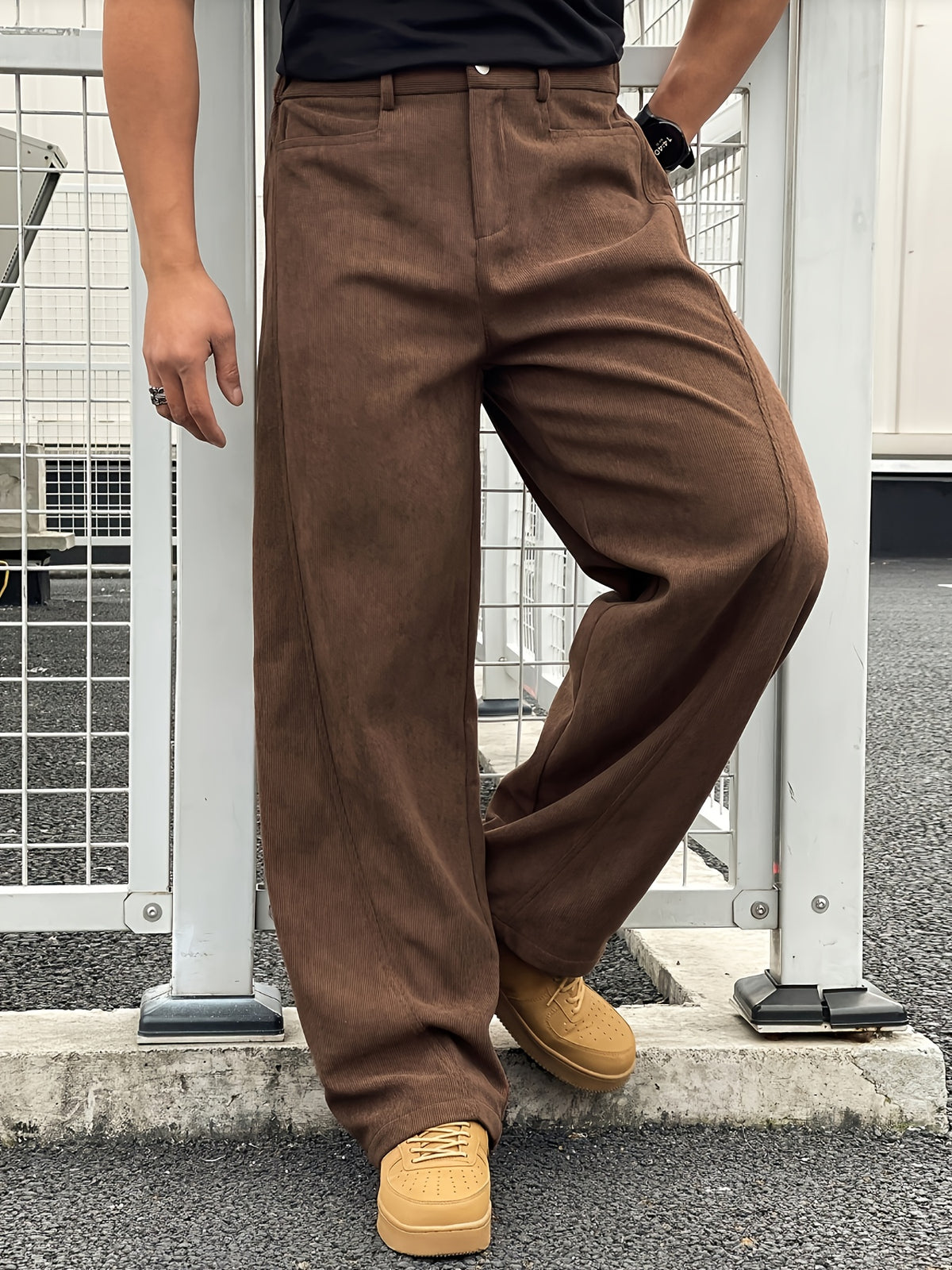 The Loose Straight Pants are designed for a relaxed yet polished casual look. Crafted from 100% woven polyester, these pants feature a loose fit with a straight-leg silhouette for effortless comfort and a clean profile. The non-stretch fabric provides a structured appearance, while the solid color design and zip closure keep the style minimal and versatile. Non-transparent and easy to maintain, they are suitable for everyday wear and can be both machine washed and dry cleaned.