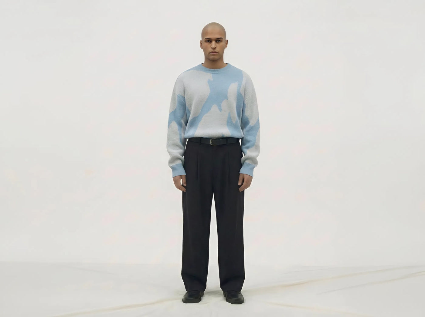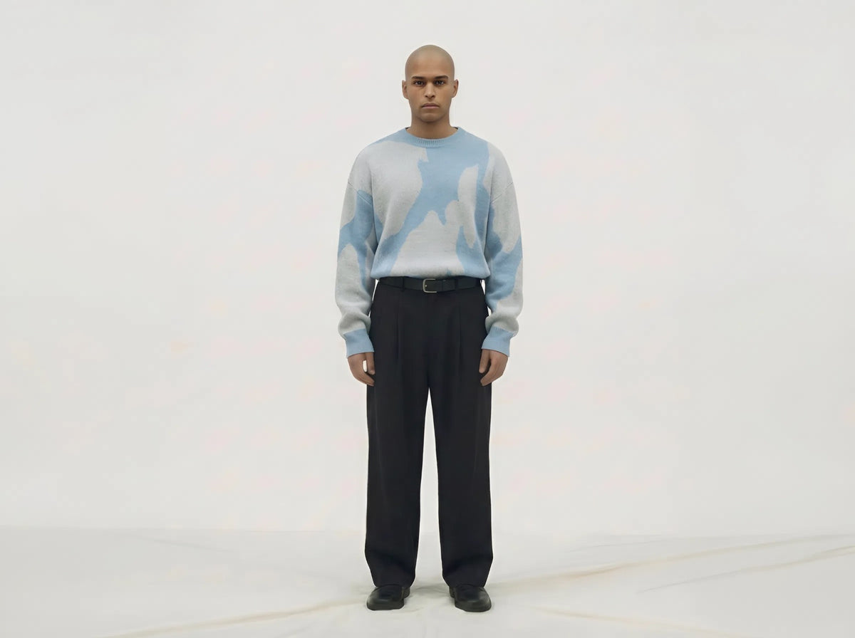 The MARBLED sweater is designed with a relaxed, loose fit for effortless everyday comfort. Crafted from lightly stretchy polyester fabric, it’s ideal for spring and autumn wear. Finished with a classic round neckline and subtle geometric patterns, it blends casual ease with timeless style.